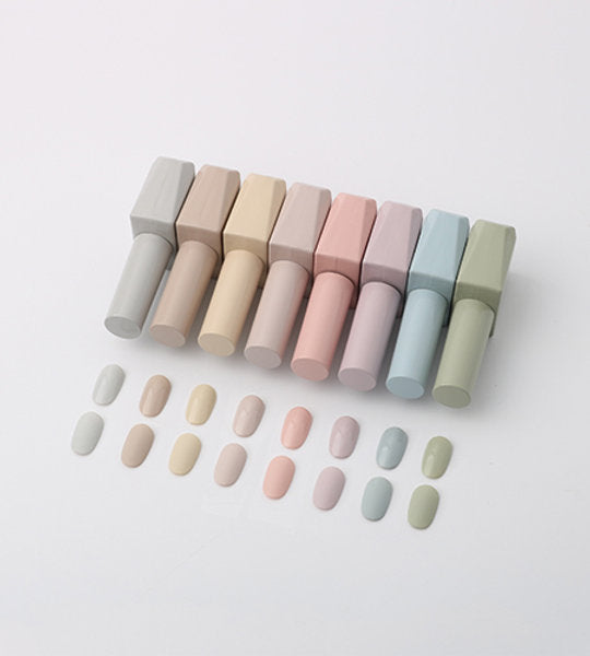 8 muted colour gels drawn from the inspiration of the interior of a cozy countryside cottage and it's exterior, a cozy flower garden.