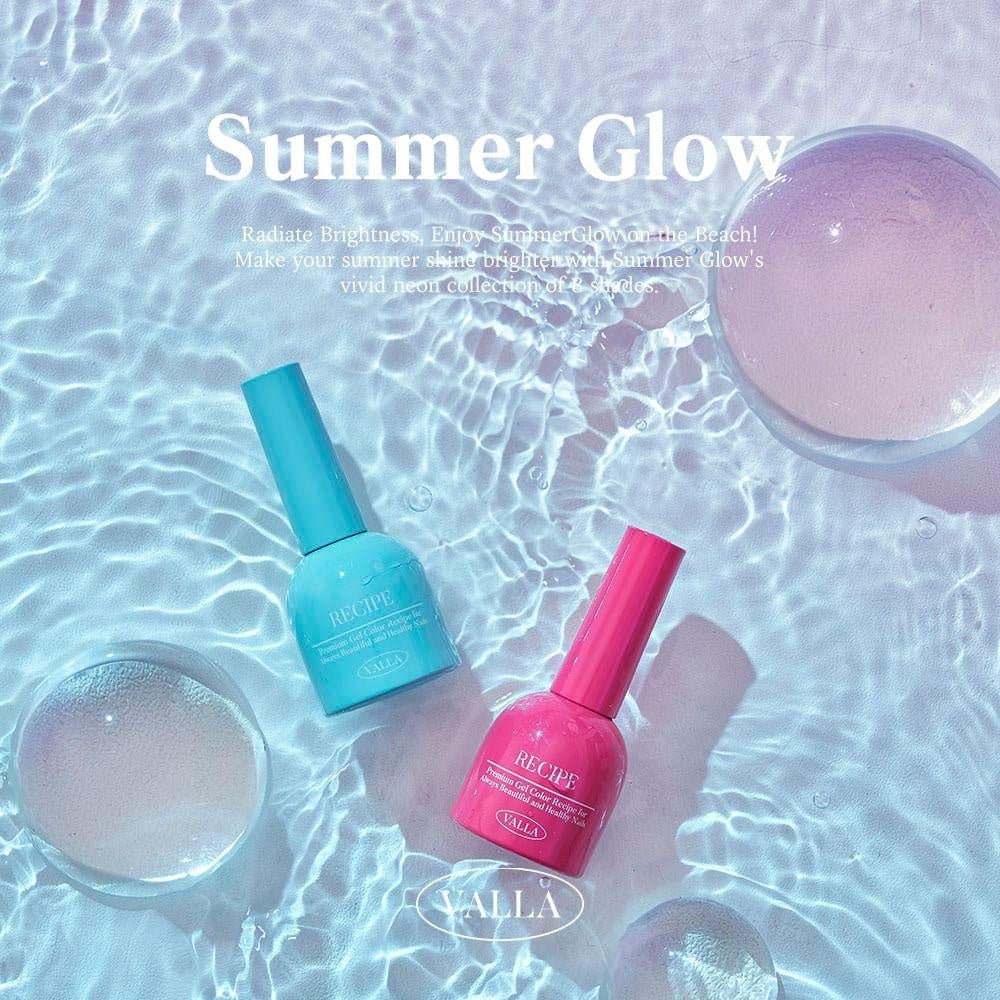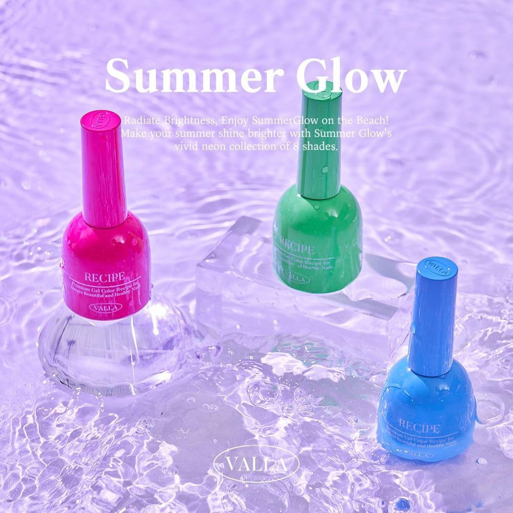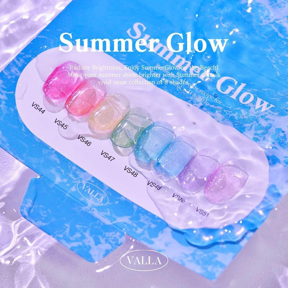 Valla's Summer Glow collection includes 8 translucent neon coloured syrup gels. You can build on each colour by layering multiple coats.
