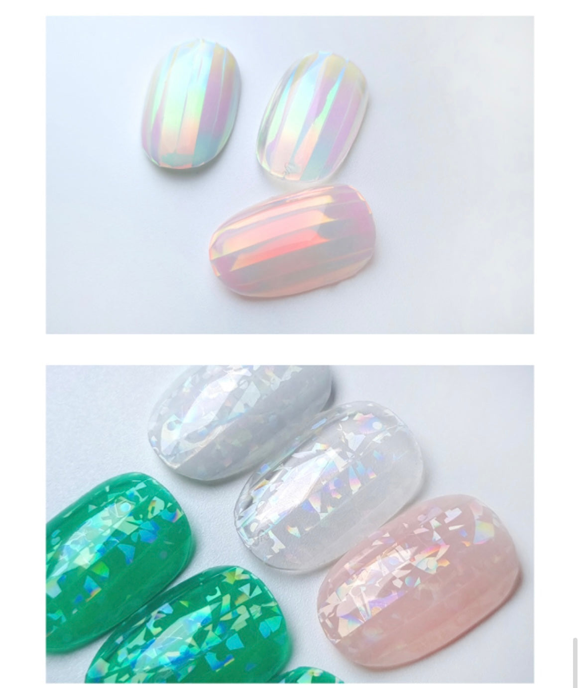 with gel for mirror tip effects, glass piece nails, or special base and top.