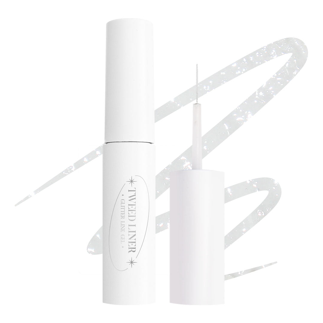 7 premium glitter gels and 1 white tweed liner gel