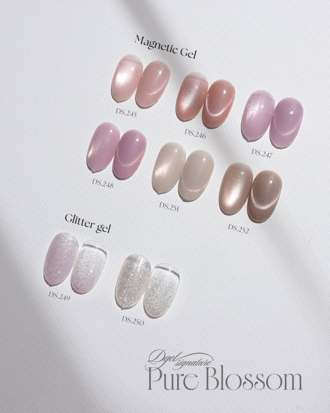 6 magnetic cat eye gels and 2 dainty basic glitter gels