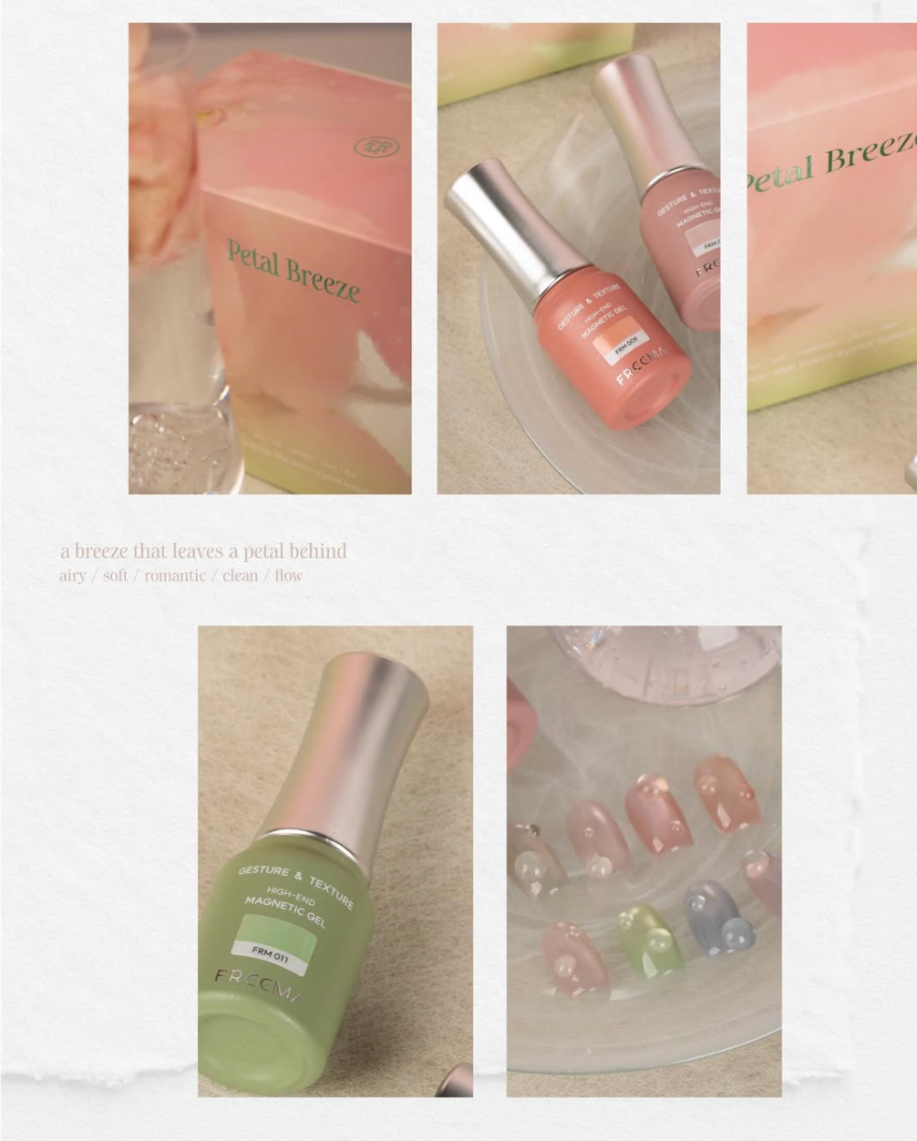 Clear and soft colors meet the gentle flowing magnetic effect, putting the excitement of spring and the transparency of petals on the finger tips ♥