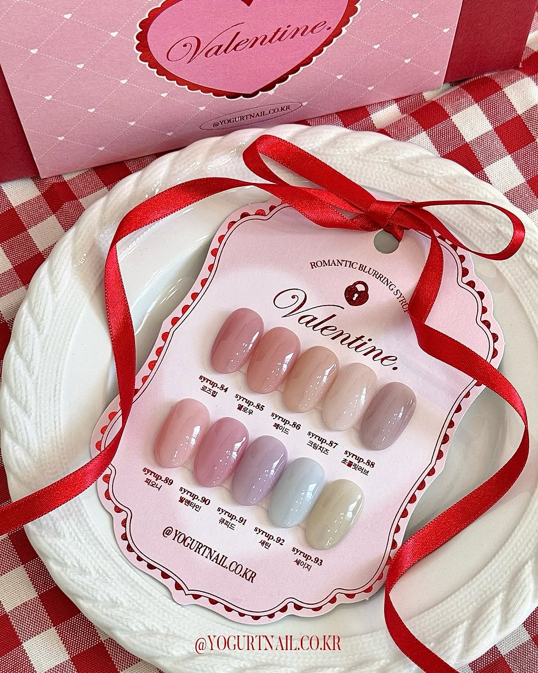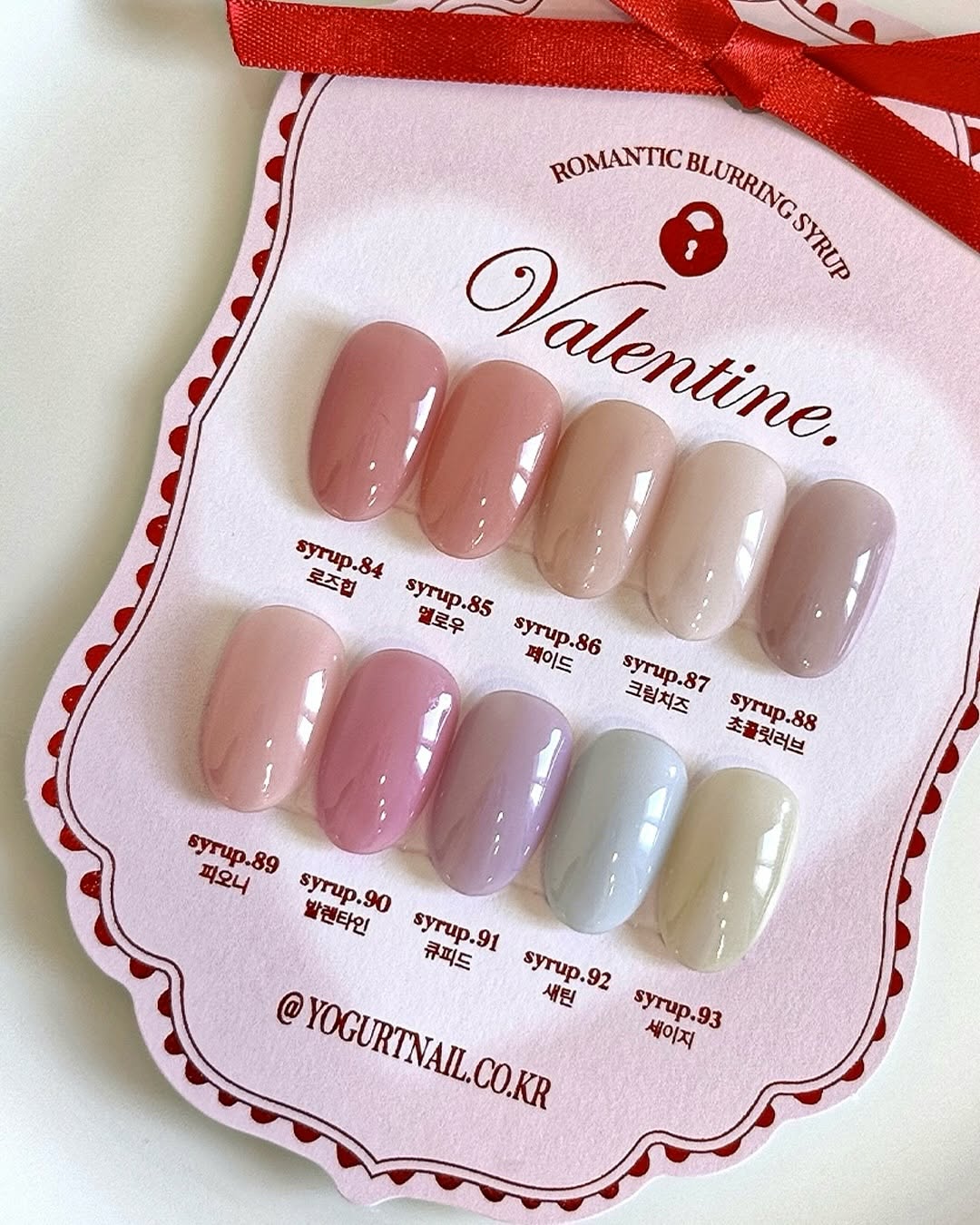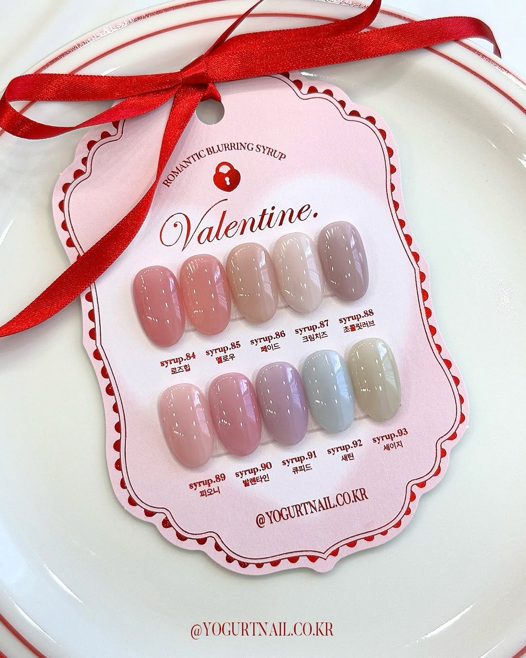 Indulge in the alluring charm of Yogurt Nail Korea's Valentine collection - 10 romantic syrup gel colours that captivate the heart.