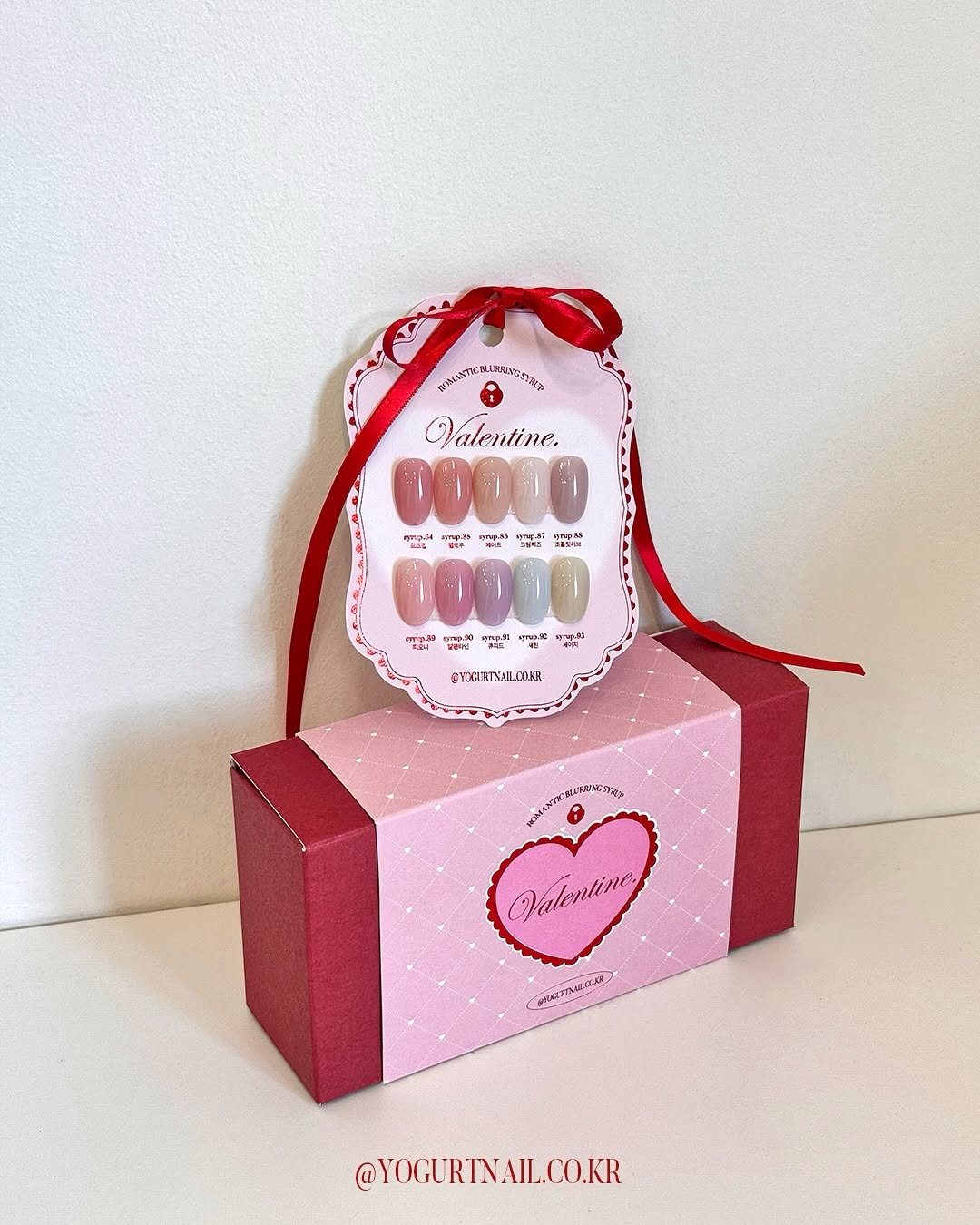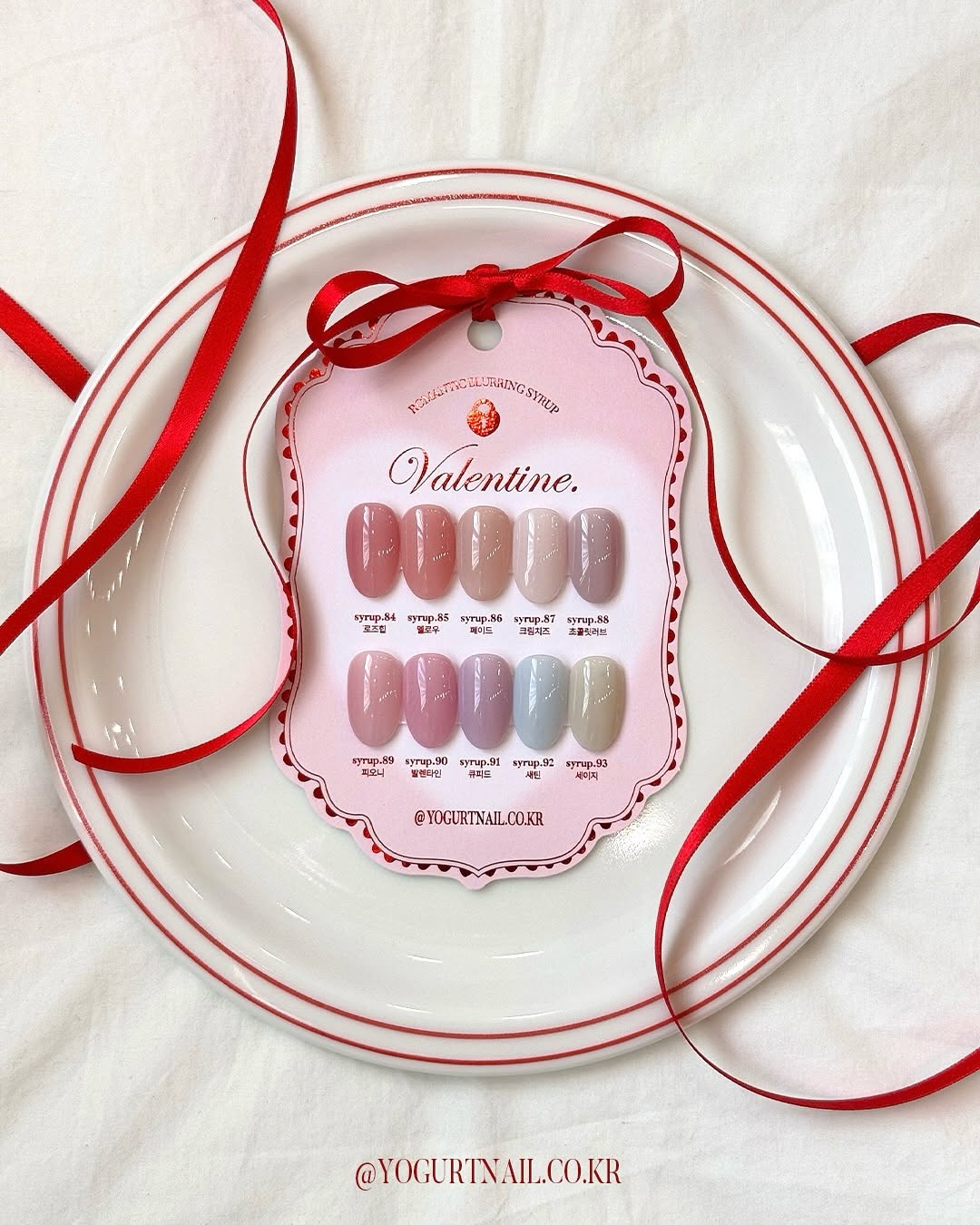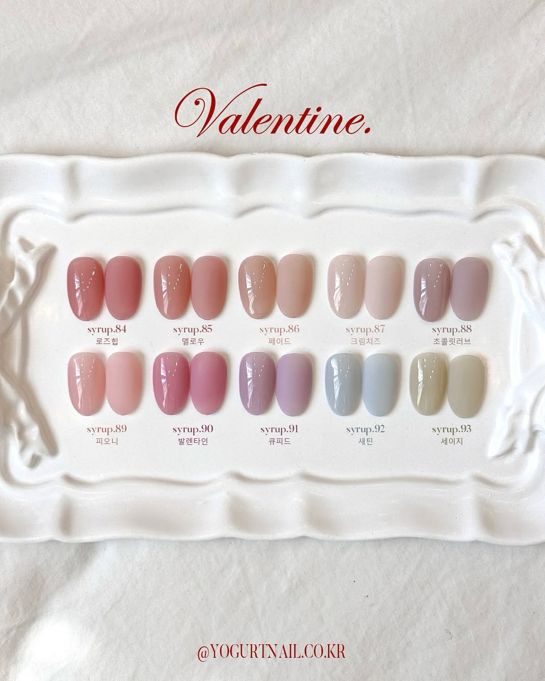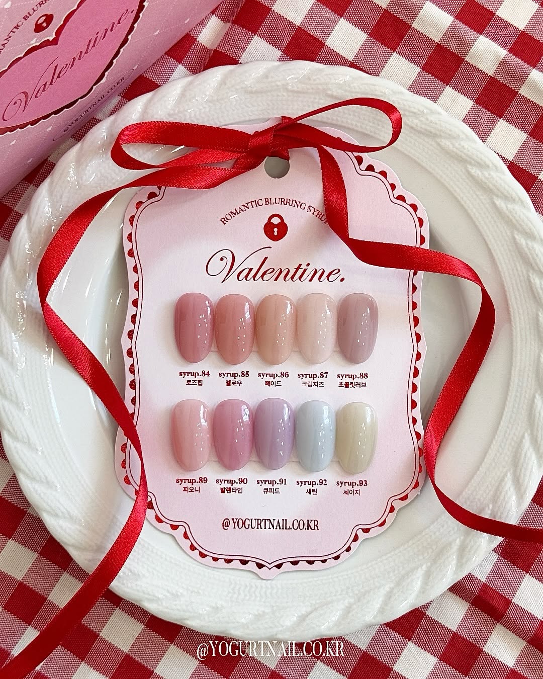 Indulge in the alluring charm of Yogurt Nail Korea's Valentine collection - 10 romantic syrup gel colours that captivate the heart.